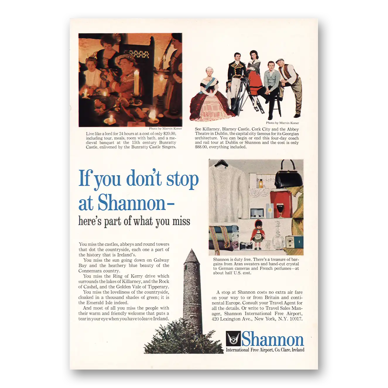 1965 Shannon International Free Airport Print Ad | If You Don’t Stop