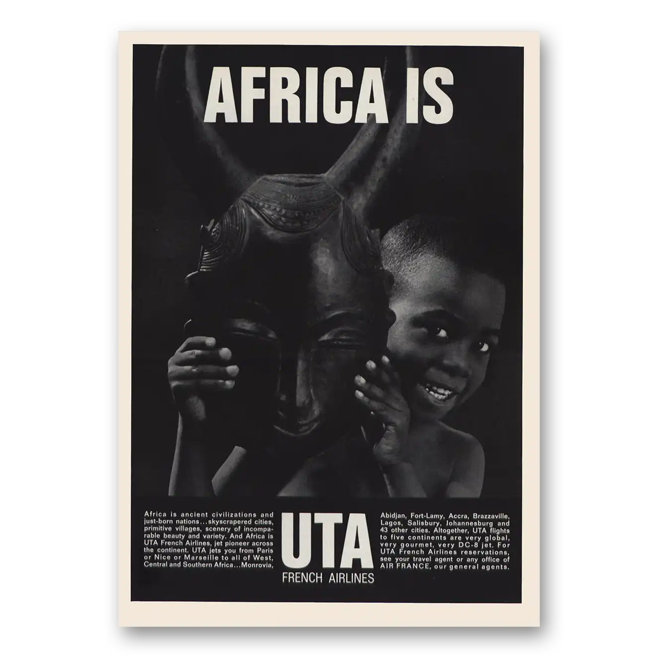 1965 UTA French Airlines Print Ad | Africa Is Uta