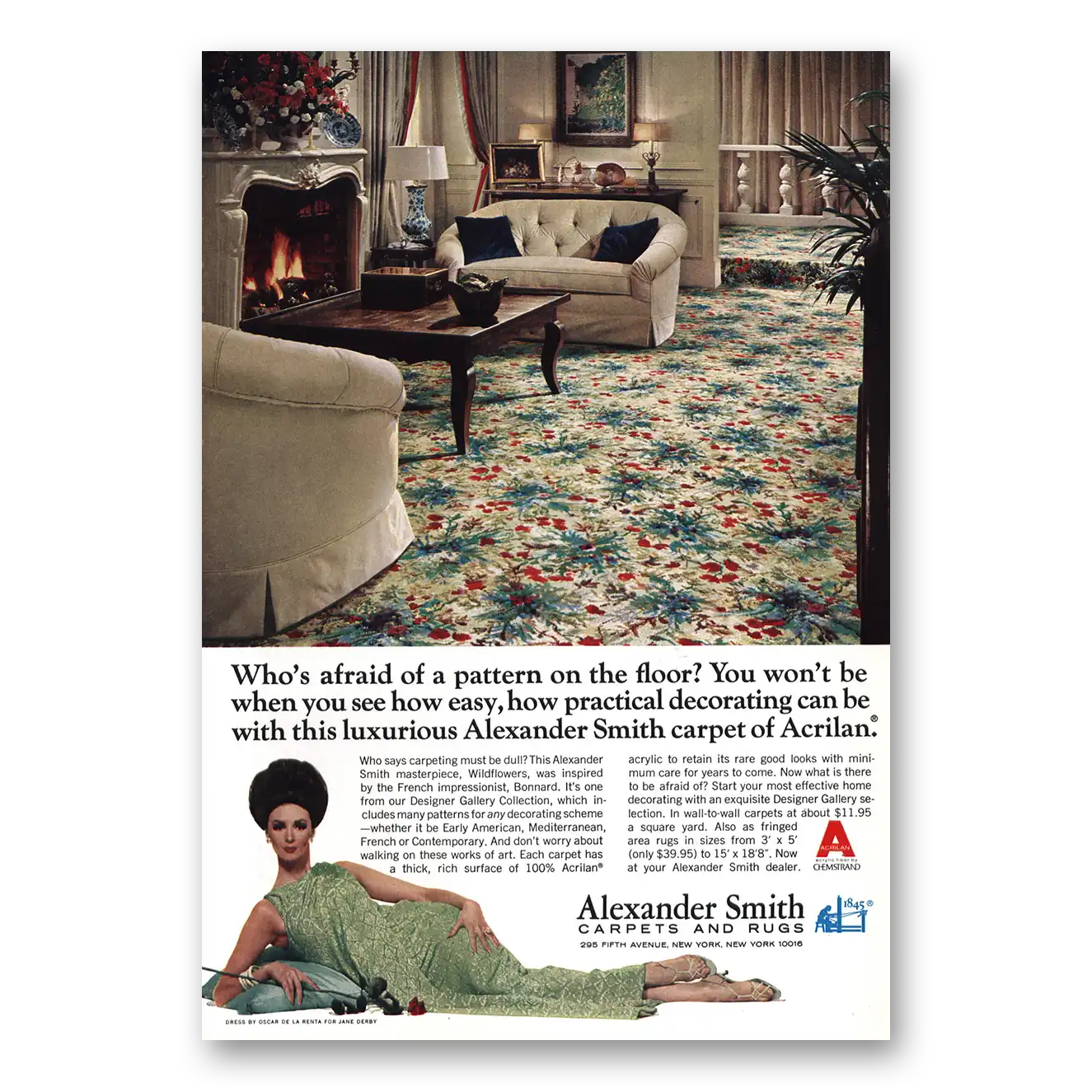 This is an original 1966 Alexander Smith Carpet print ad published by Alexander Smith.
