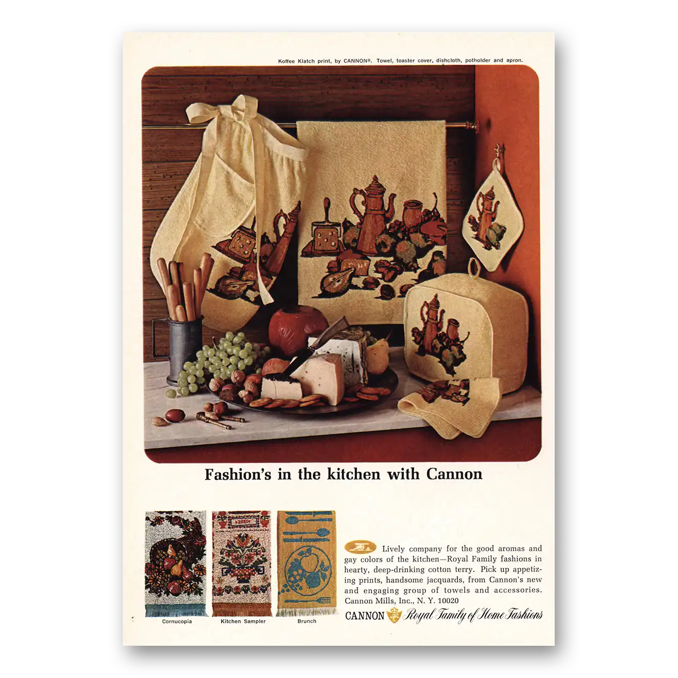 1966 Cannon Mills Print Ad | Fashions In The Kitchen