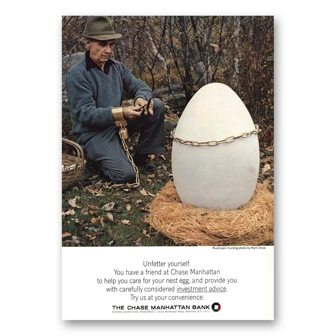 1966 Chase Manhattan Bank Print Ad | Mushroom Hunting