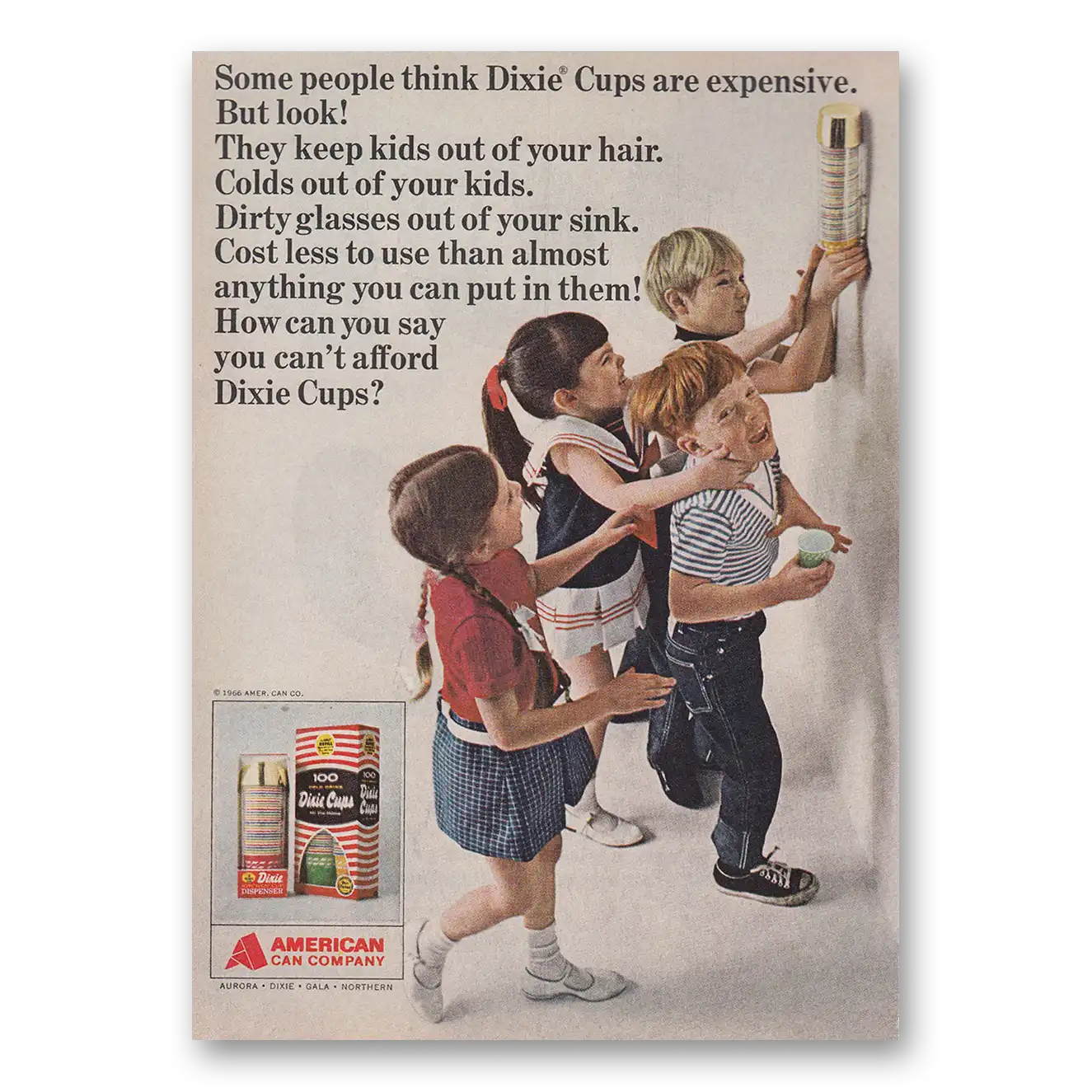 This is an original 1966 Dixie Cup print ad published by Dixie Cup.
