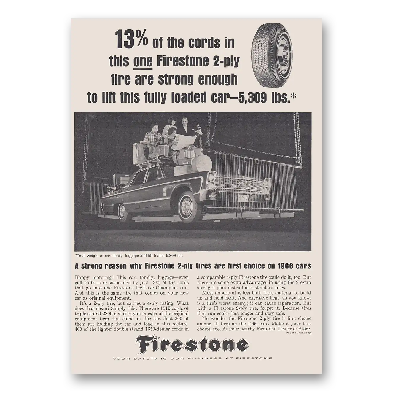 1966 Firestone Tires Print Ad | Strong Enough
