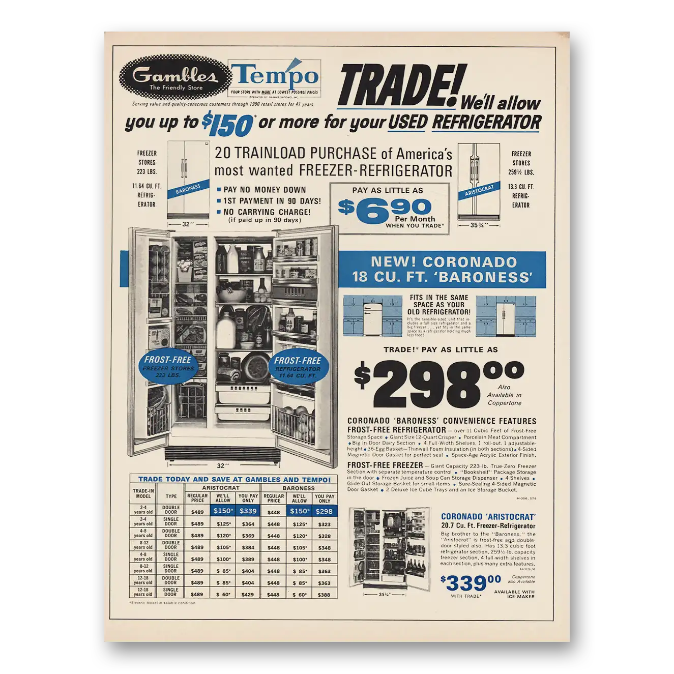1966 Gambles Print Ad | Trade Used Refrigerator