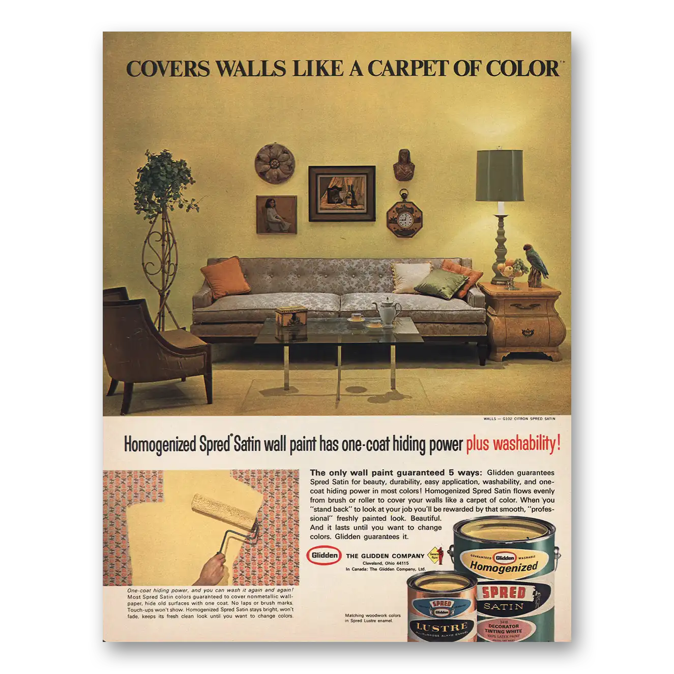1966 Glidden Print Ad | Covers Walls Like Carpet Of Color