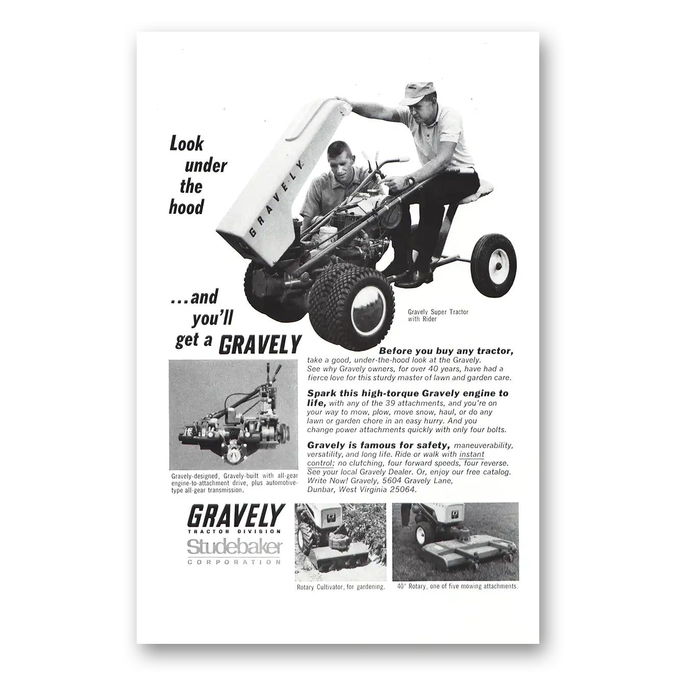 1966 Gravely Tractors Print Ad | Under Hood1966 Gravely Tractors Print Ad | Under Hood