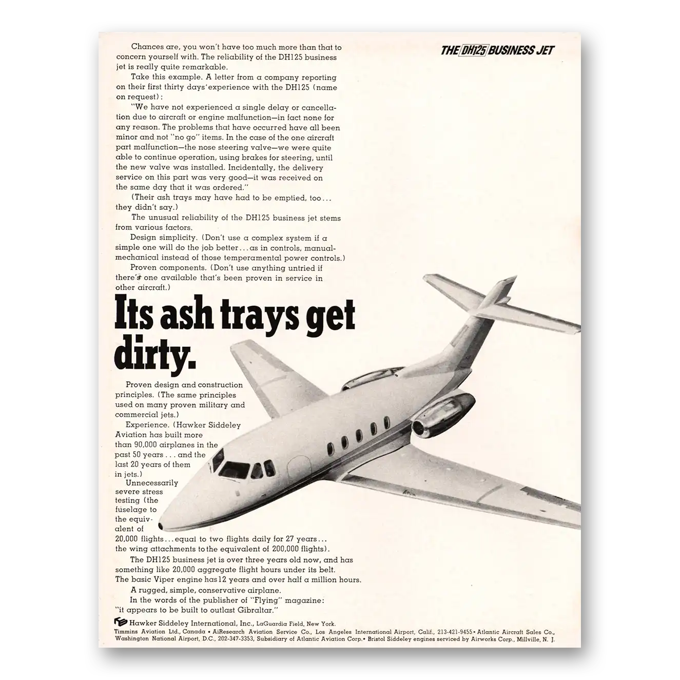 1966 Hawker Siddeley DH125 Airplane Print Ad | Ash Trays