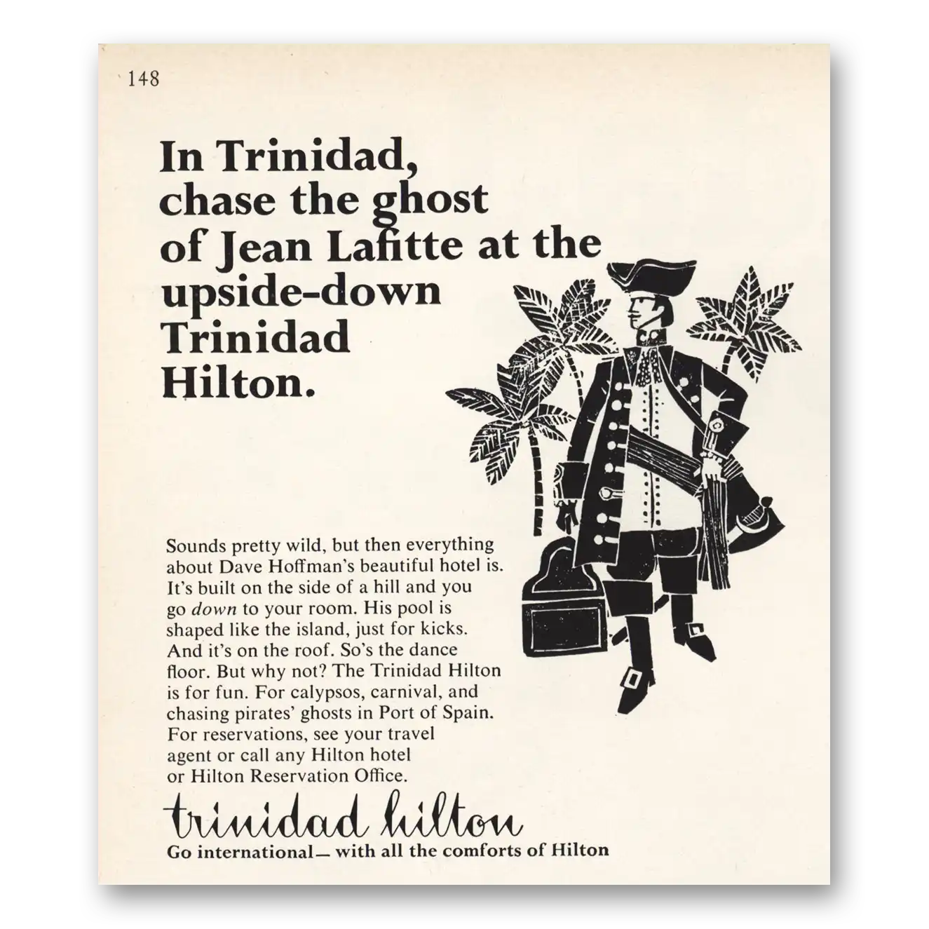 1966 Hilton Hotels Print Ad | Chase Ghost Of Jean Lafitte