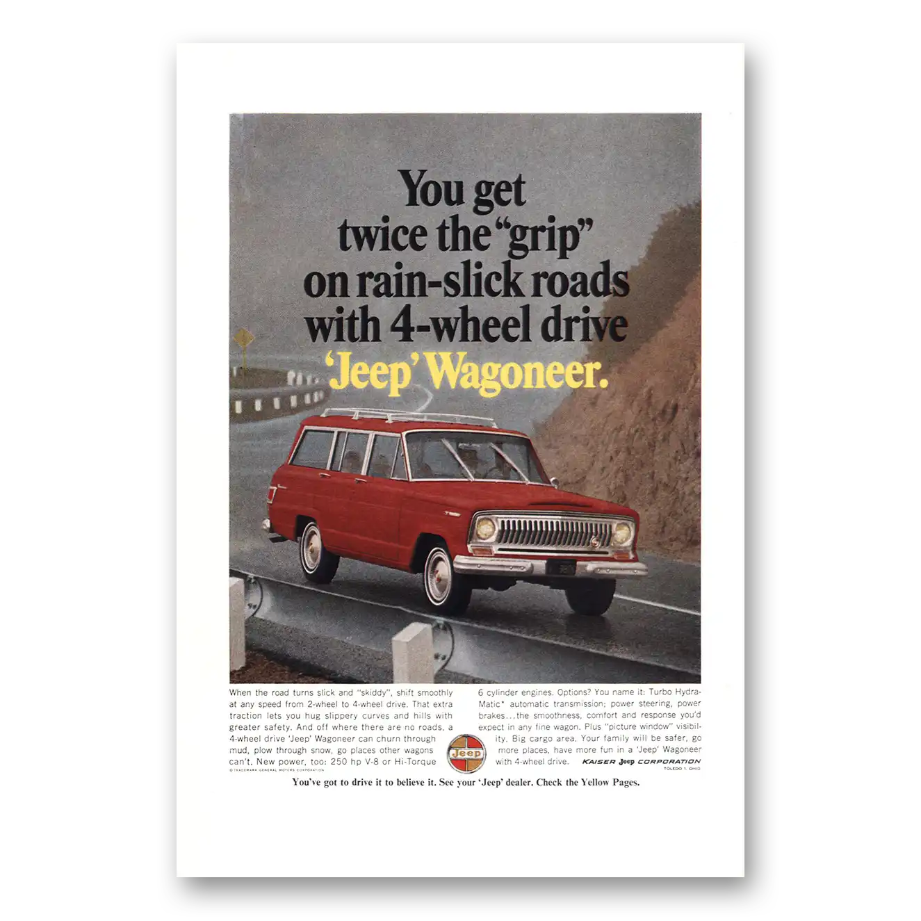 1966 Jeep Wagoneer Print Ad | Rain Slick Roads