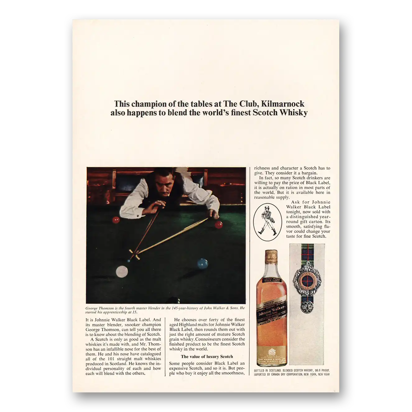 This is an original 1966 Johnnie Walker Black Label print ad published by Johnnie Walker.