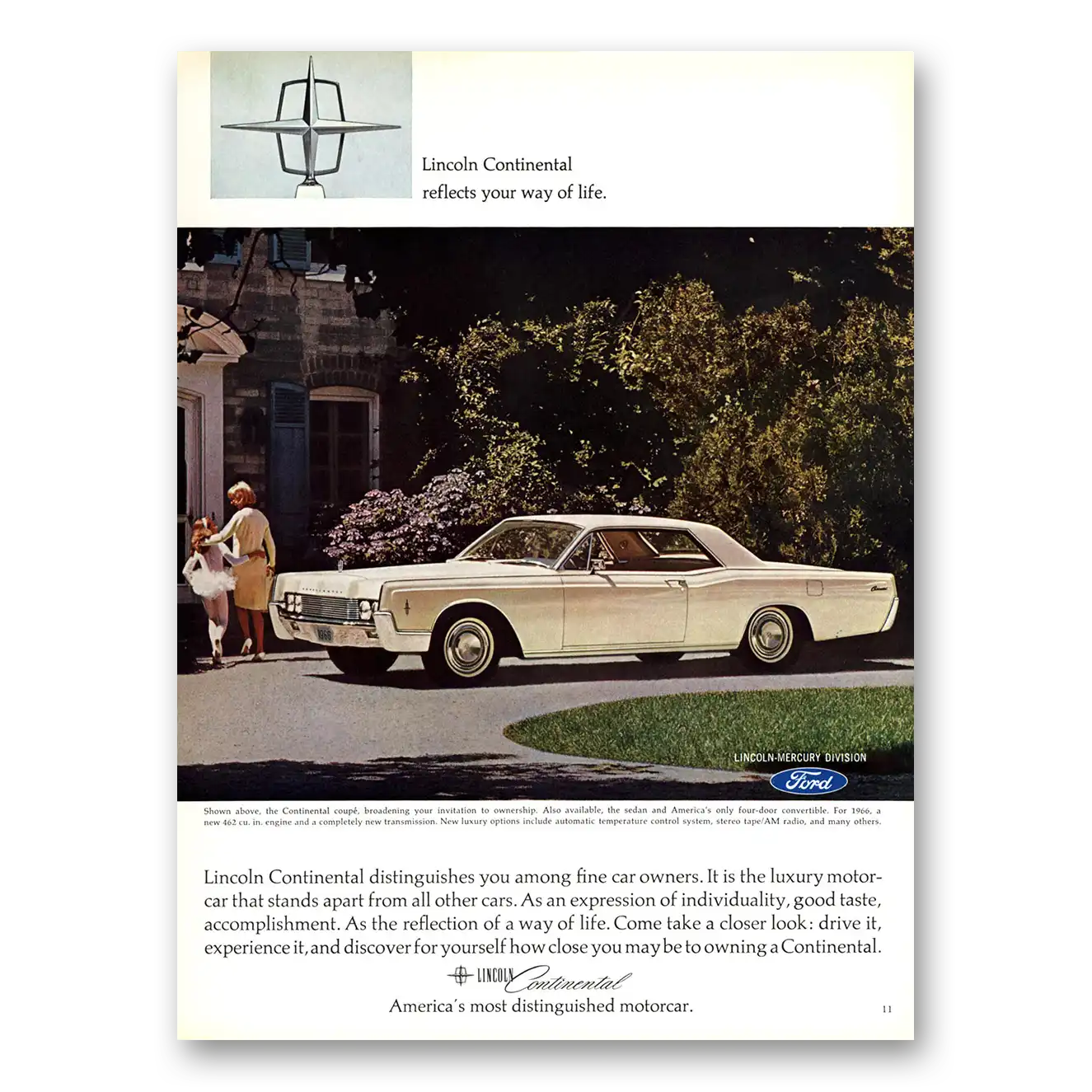 This is an original 1966 Lincoln Continental print ad published by Lincoln.
