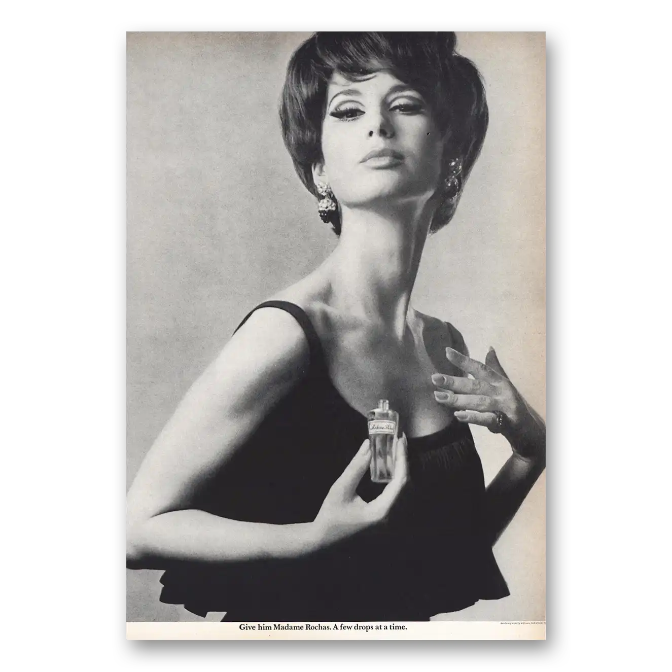 1966 Madame Rochas Parfum Print Ad | Few Drops Attime