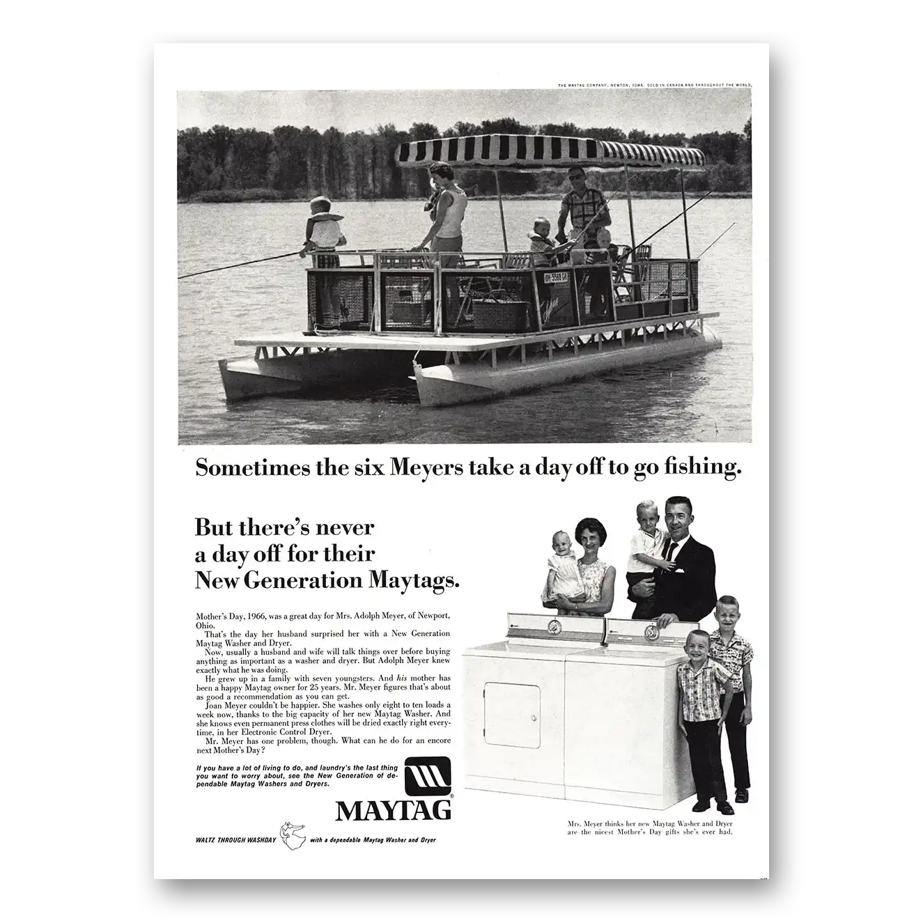 This is an original 1966 Maytag Washer Dryer print ad published by Maytag.