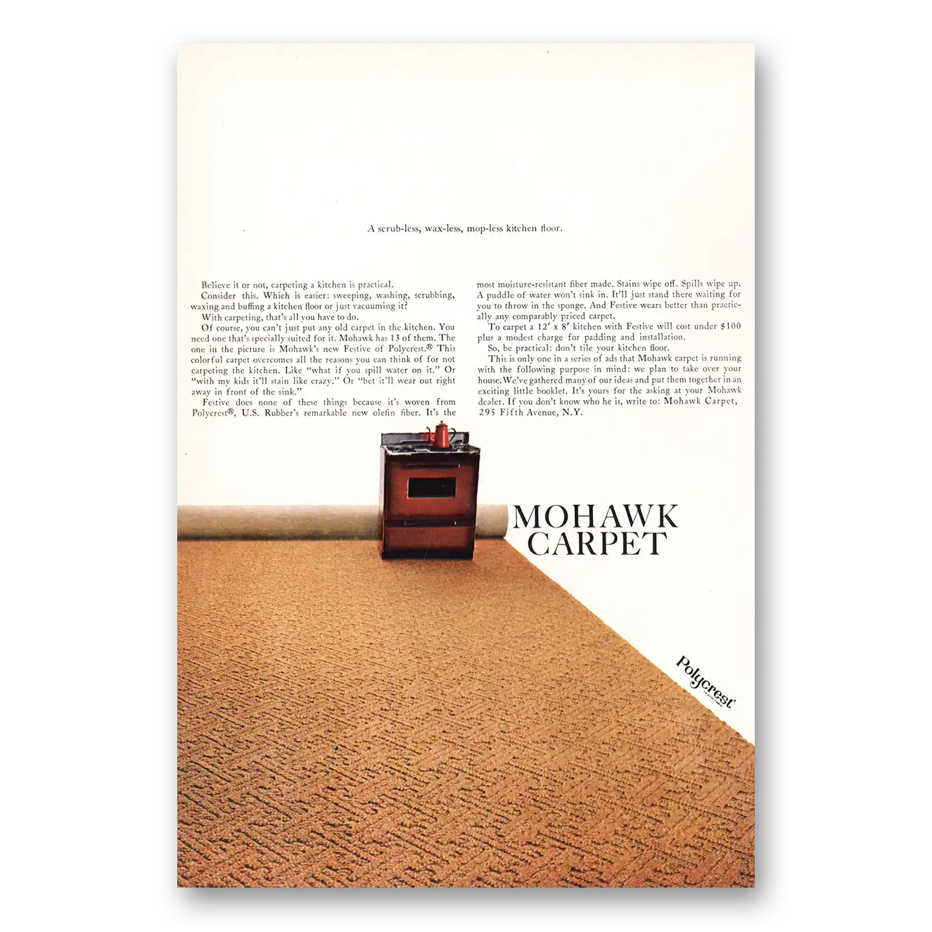 This is an original 1966 Mohawk Carpet Mills print ad published by Mohawk Carpet Mills.