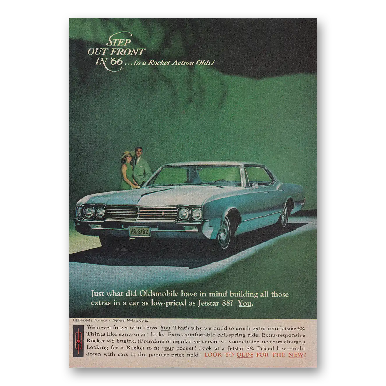 This is an original 1966 Oldsmobile Jetstar print ad published by Oldsmobile.