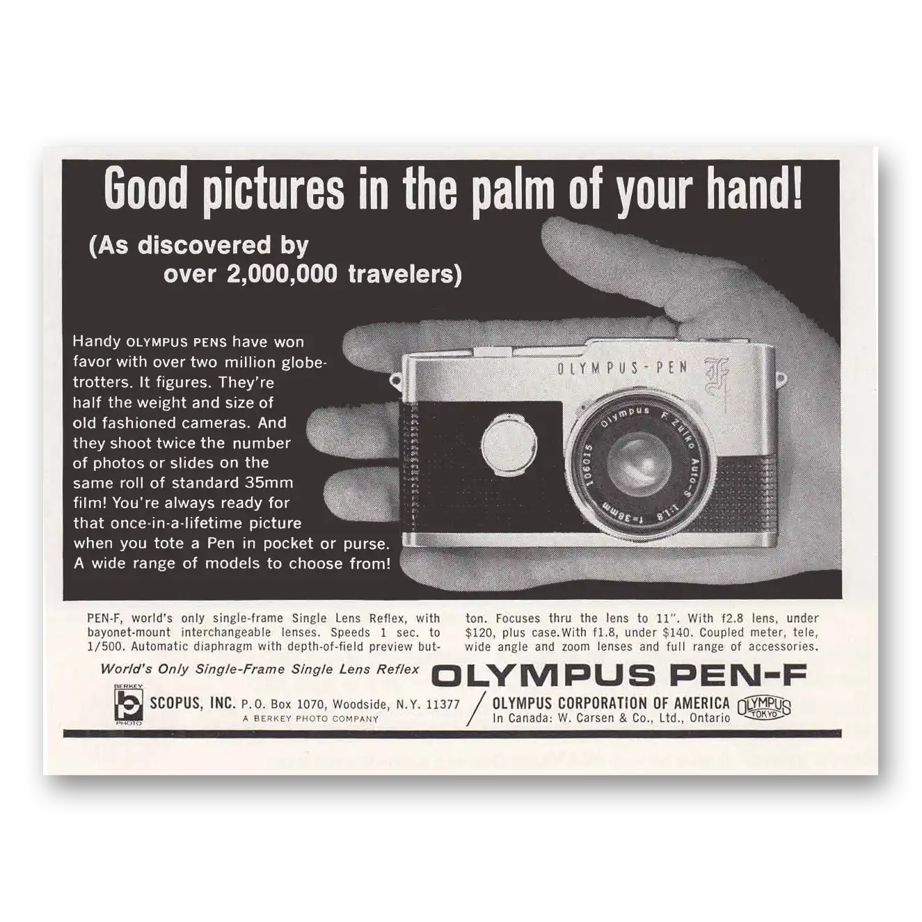 1966 Olympus Pen F Camera Print Ad | Palm Your Hand