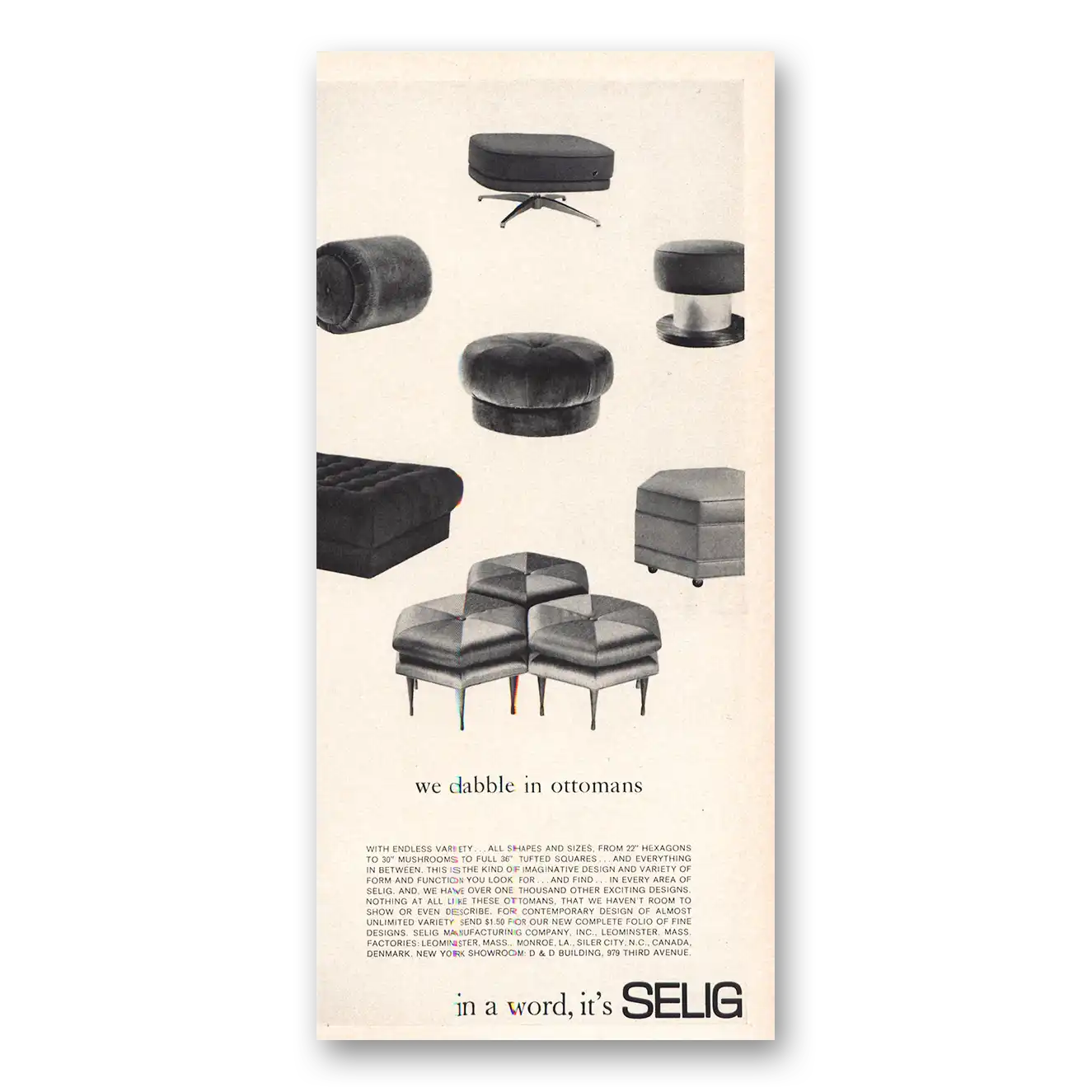 1966 Selig Print Ad | We Dabble In Ottomans