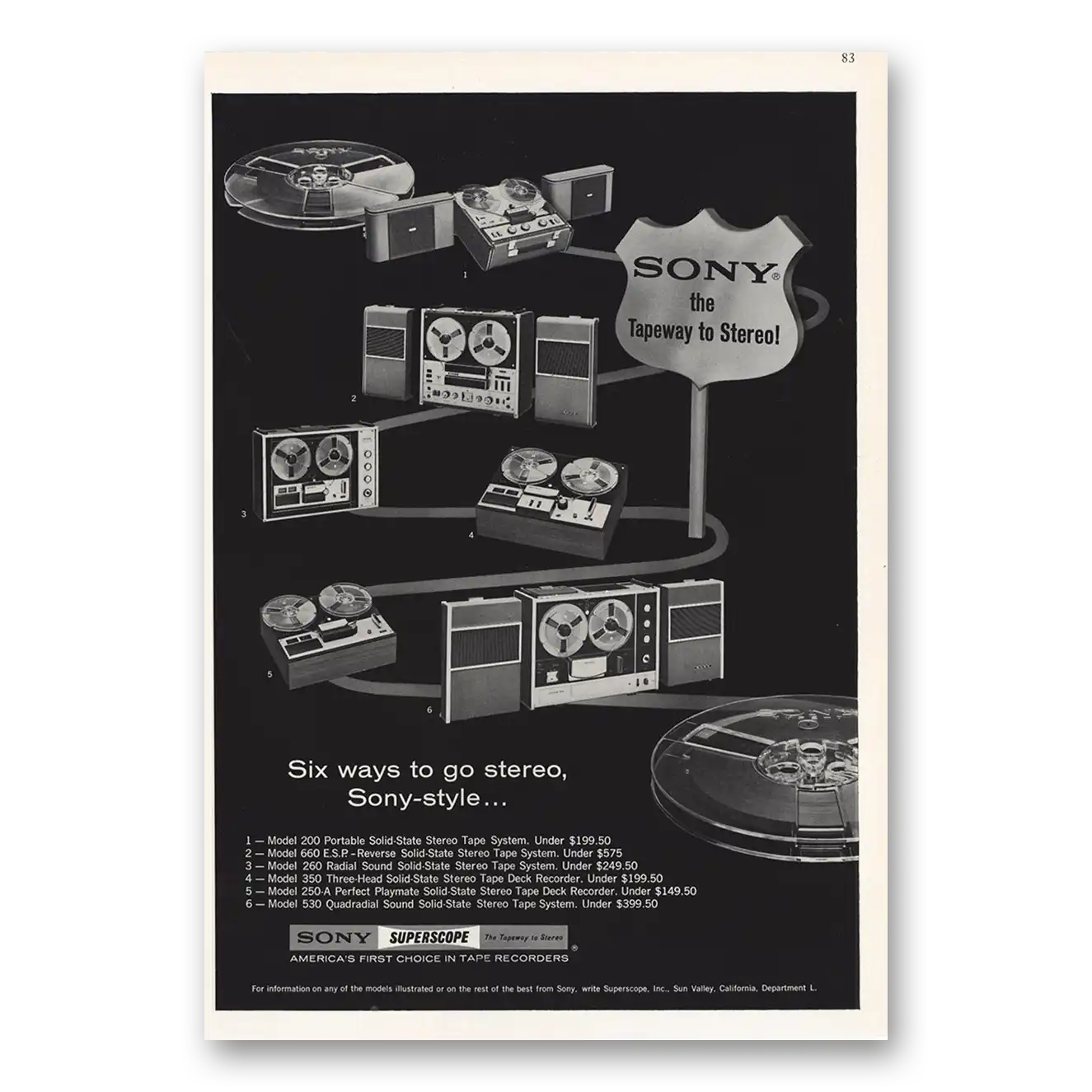 1966 Sony Print Ad | Six Ways To Go Stereo