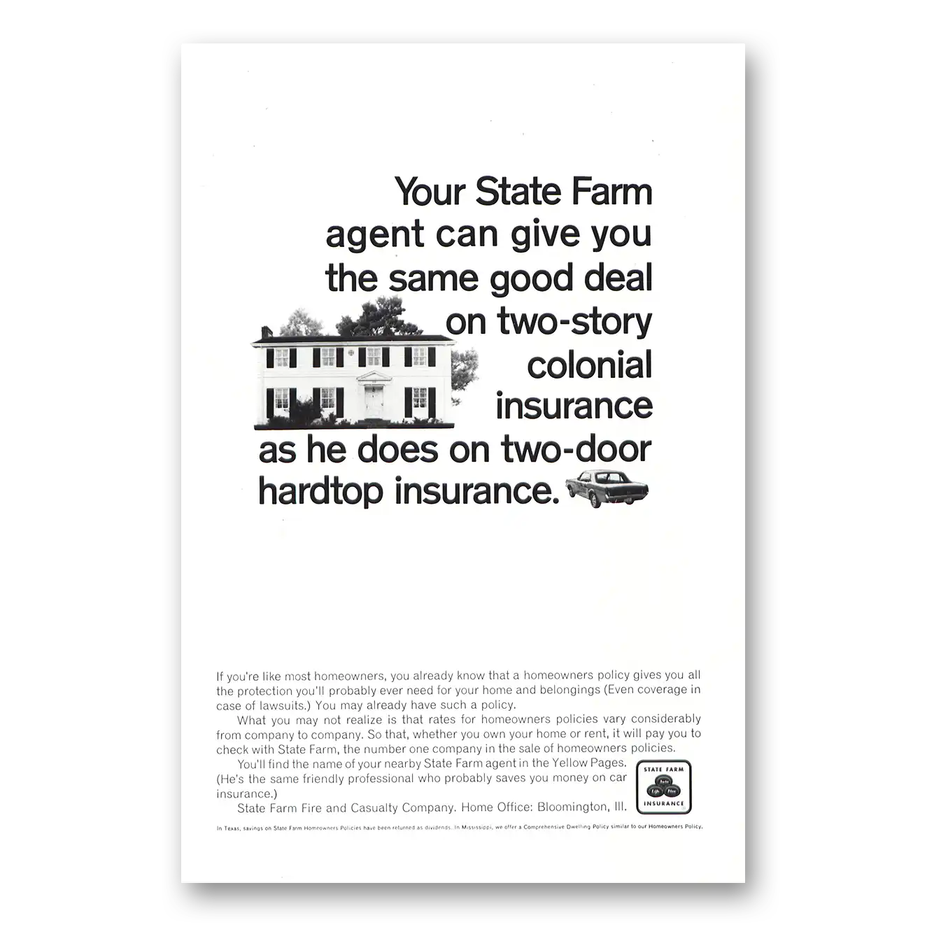 1966 State Farm Insurance Print Ad | Two Story Colonial