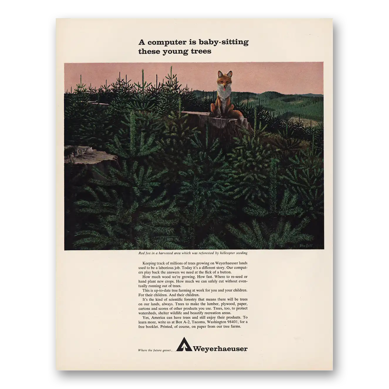 1966 Weyerhaeuser Print Ad | Computer Baby Sitting Trees