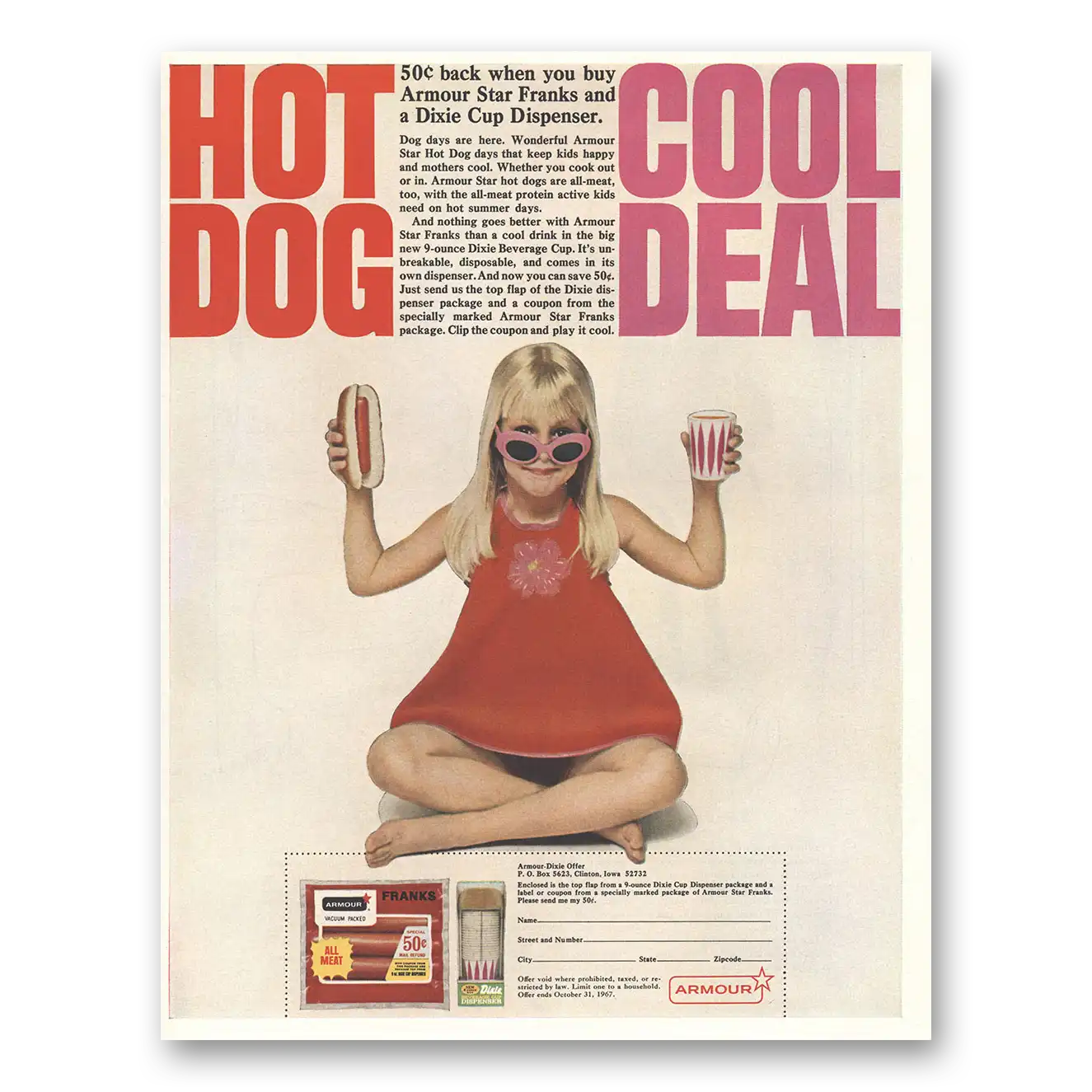 This is an original 1967 Armour Franks print ad published by Armour.
