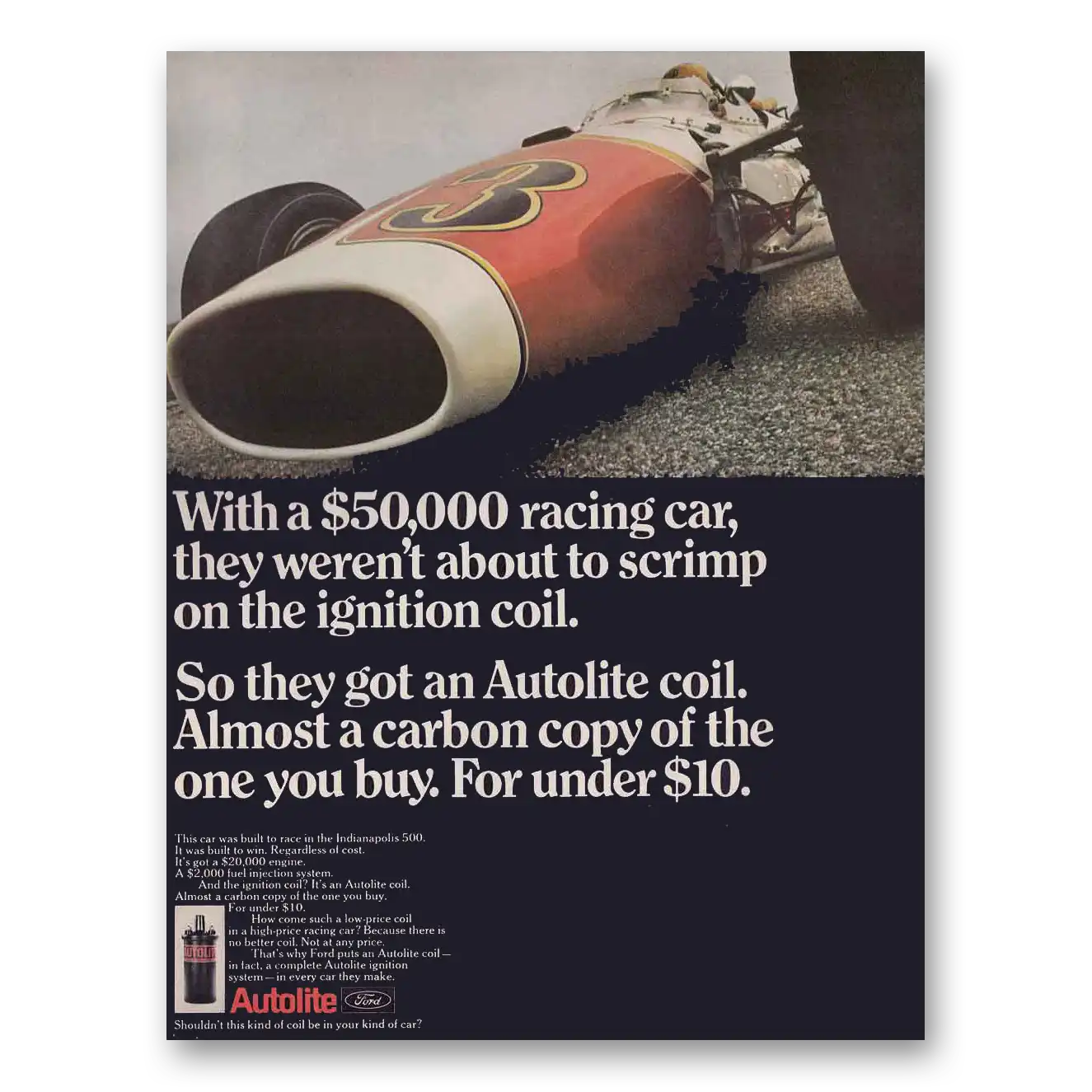 1967 Autolite Spark Plugs Print Ad | Racing Car