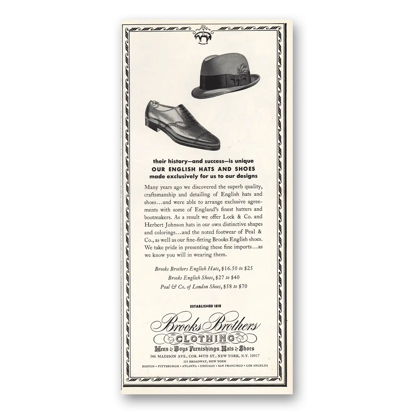 1967 Brooks Brothers Print Ad | English Hats And Shoes