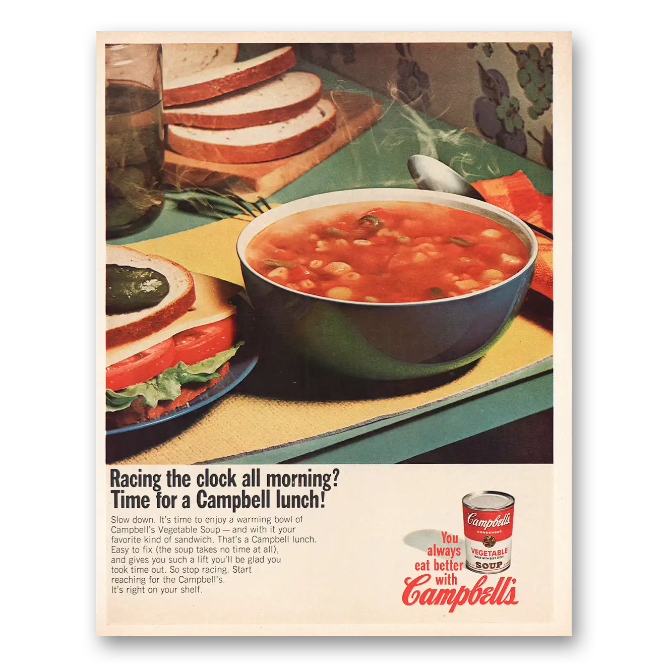 1967 Campbells Soup Print Ad | Racing The Clock All Morning