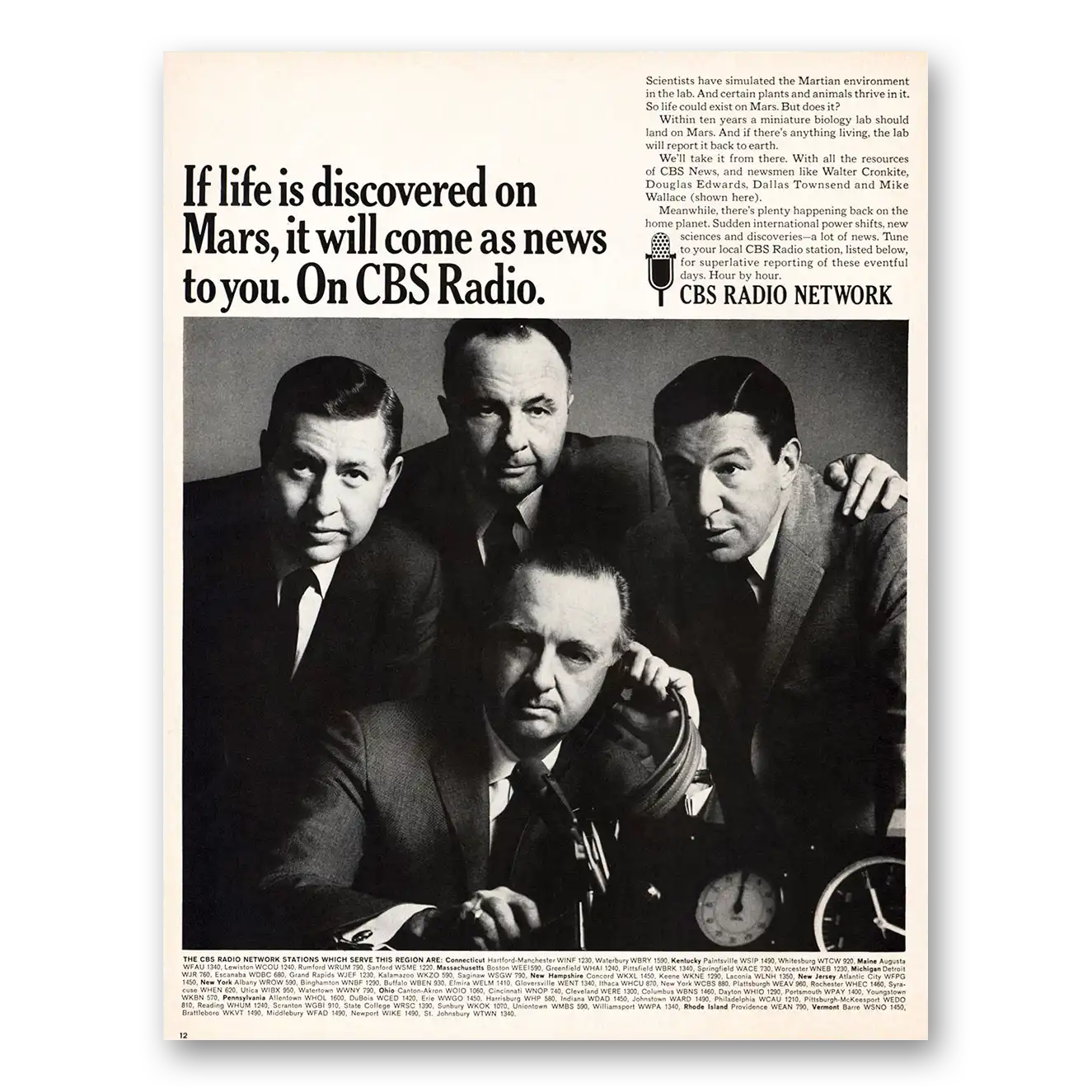 1967 CBS Radio Print Ad | Life Is Discovered On Mars Promo