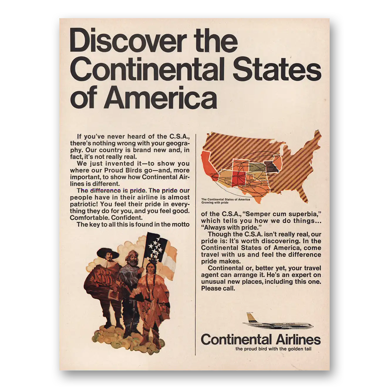 1967 Continental Airlines Print Ad | Continental States