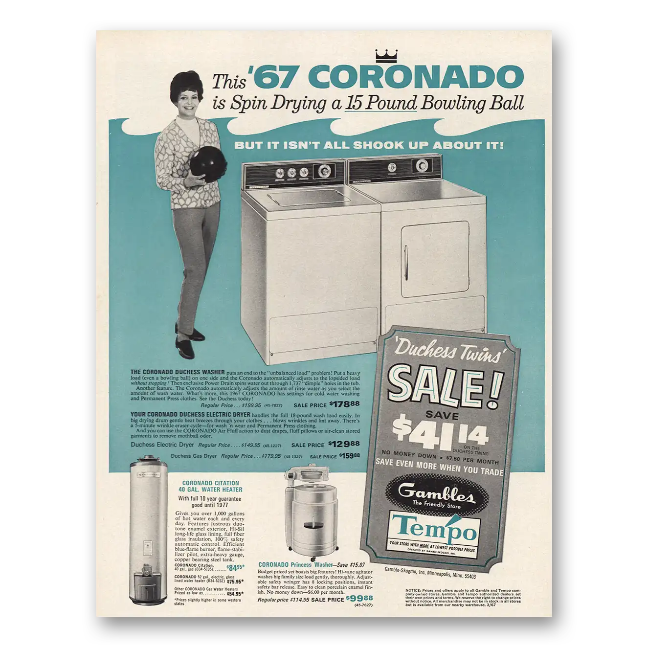 This is an original 1967 Coronado Duchess Washer print ad published by Gambles.