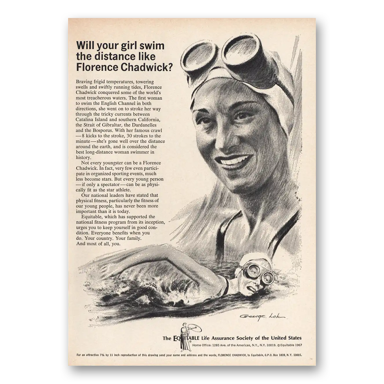 1967 Equitable Life Assurance Print Ad | Florence Chadwick