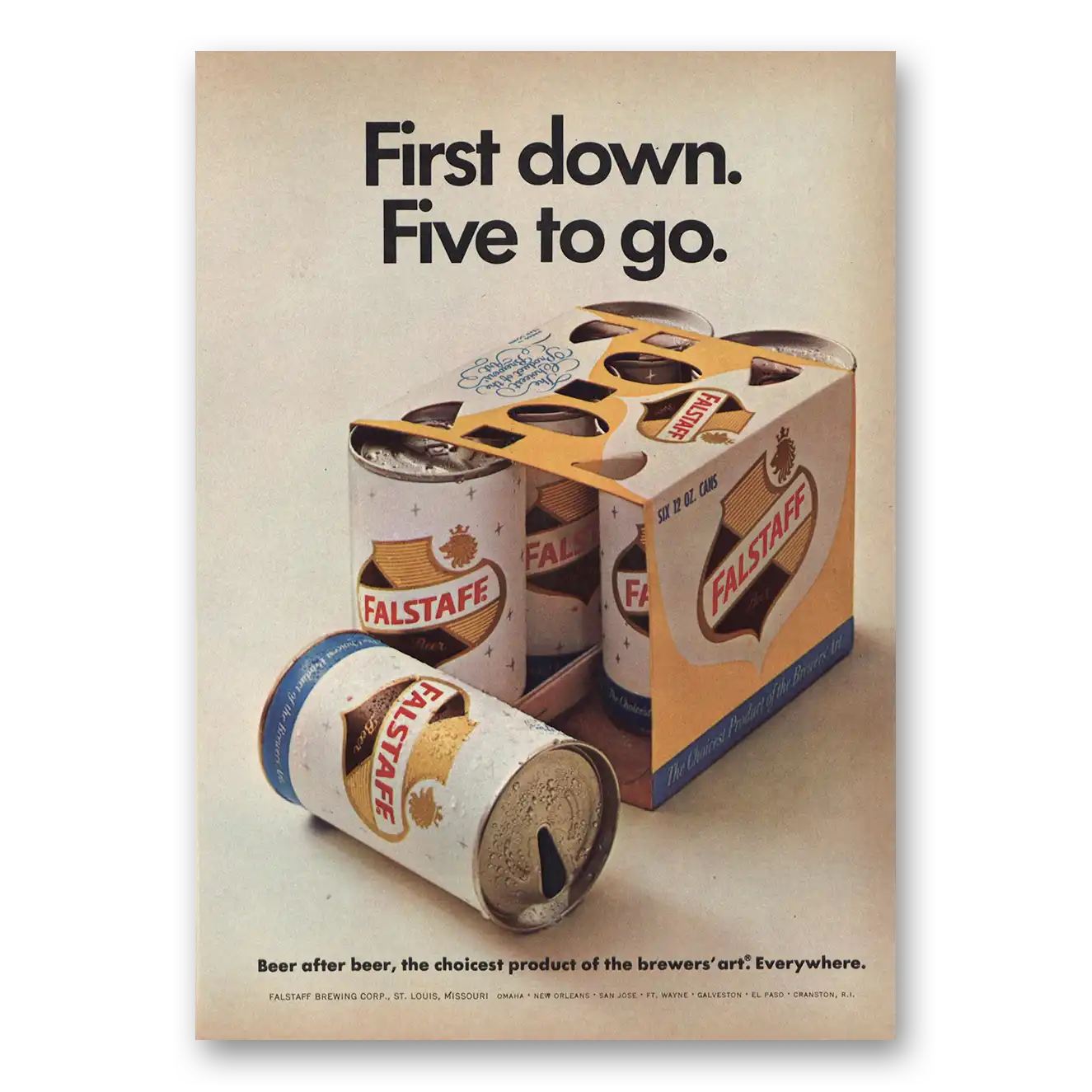 1967 Falstaff Beer Print Ad | First Down Five To Go