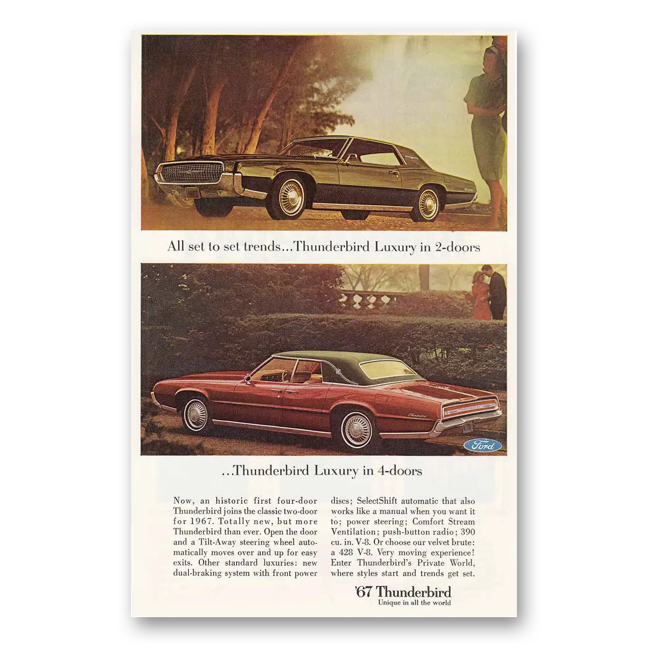 This is an original 1967 Ford Thunderbird print ad published by Ford.