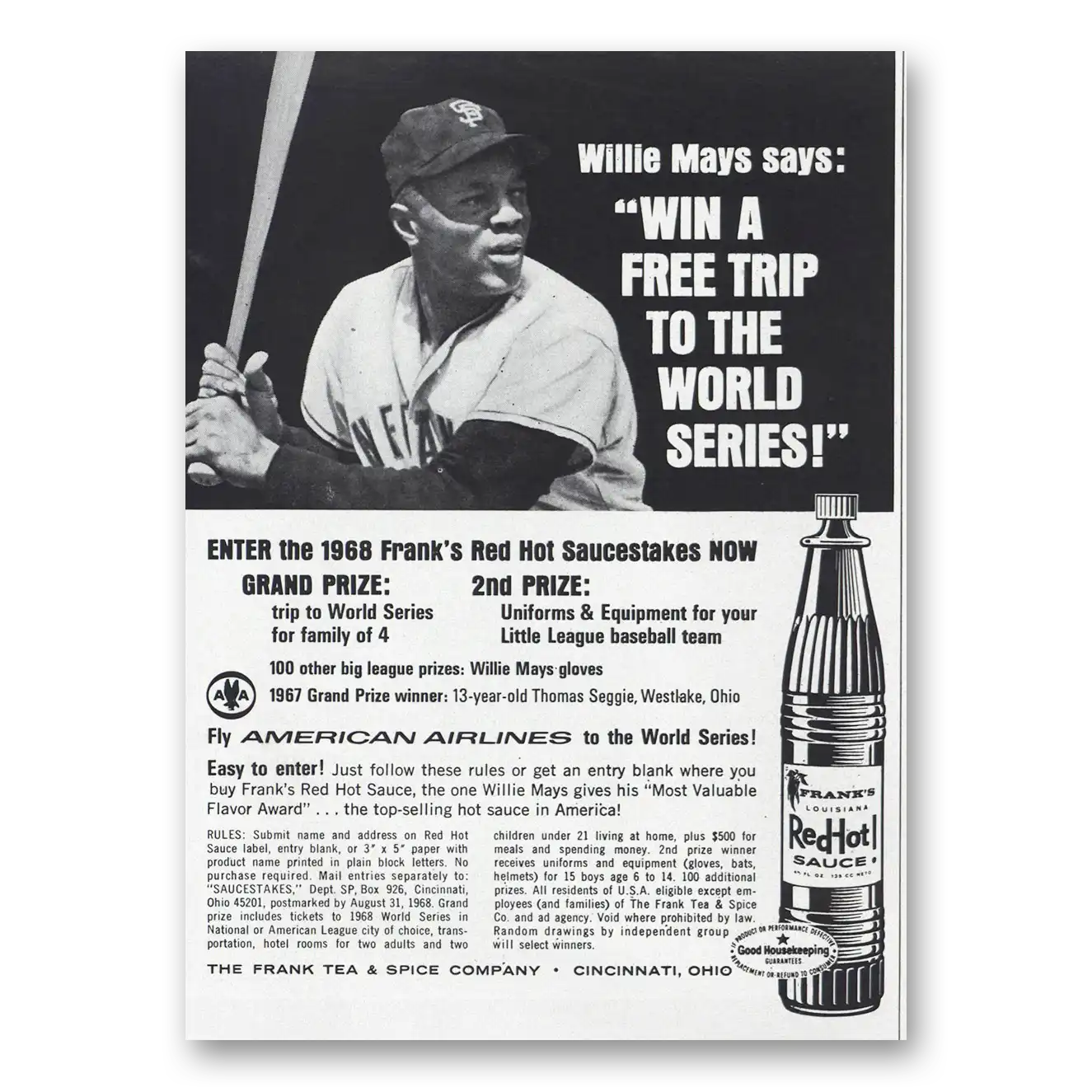 1967 Franks Red Hot Sauce Print Ad | Willie Mays