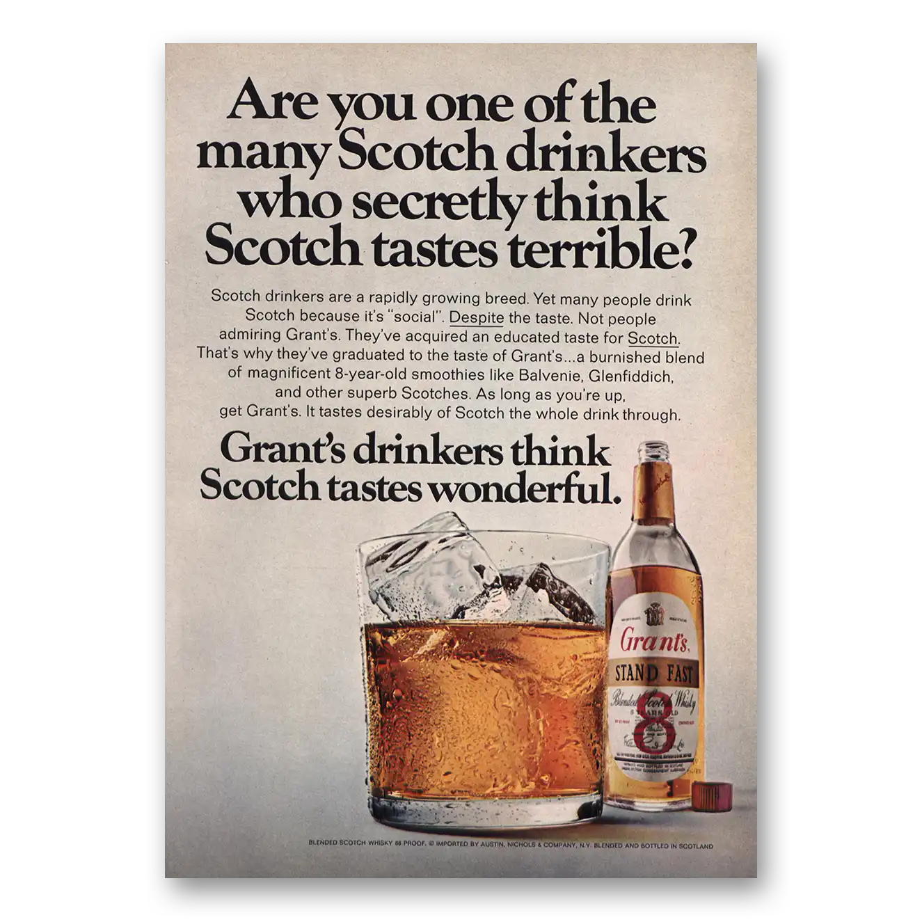 This is an original 1967 Grants Scotch Whisky print ad published by Grants Scotch Whisky.