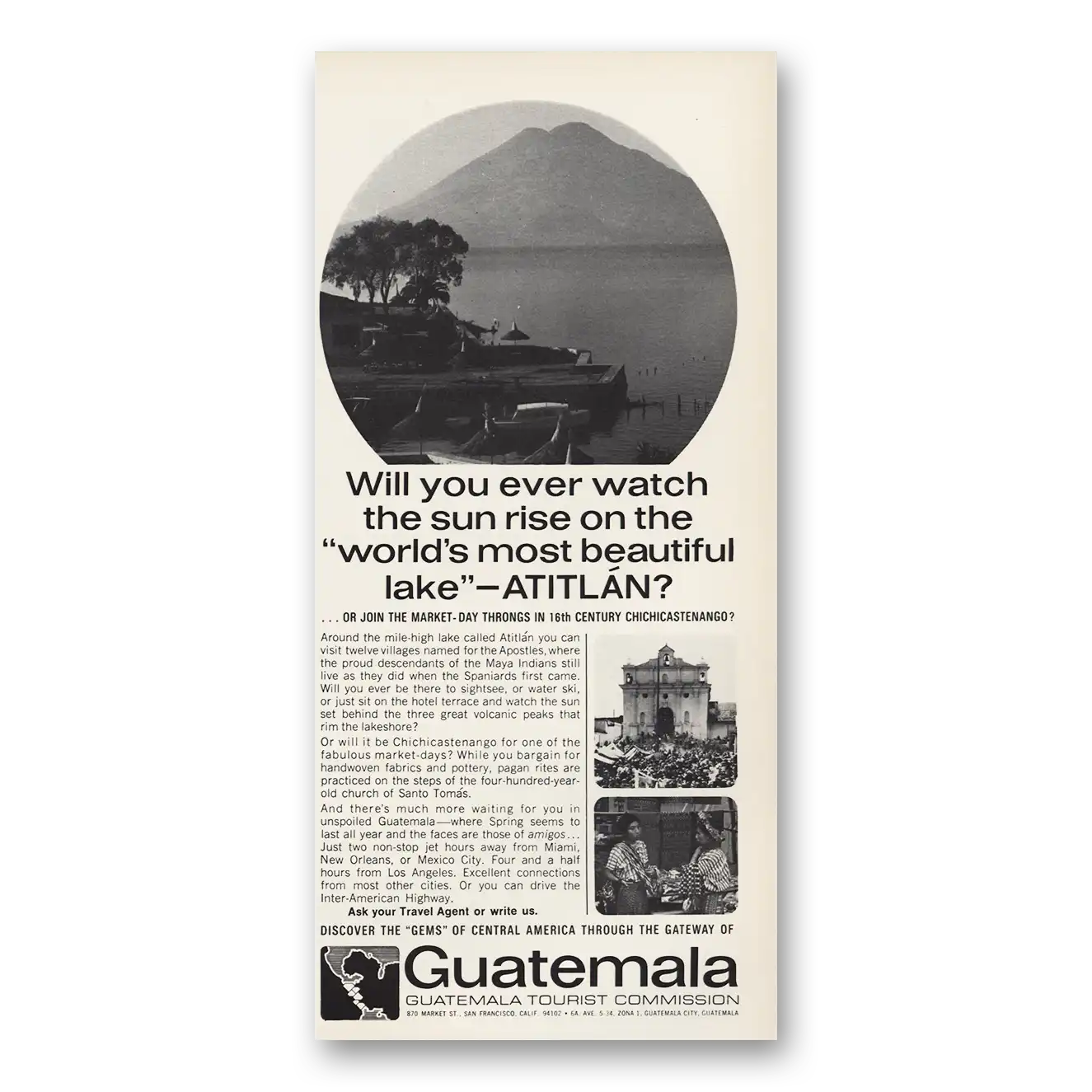 1967 Guatemala Print Ad | Worlds Most Beautiful Lake