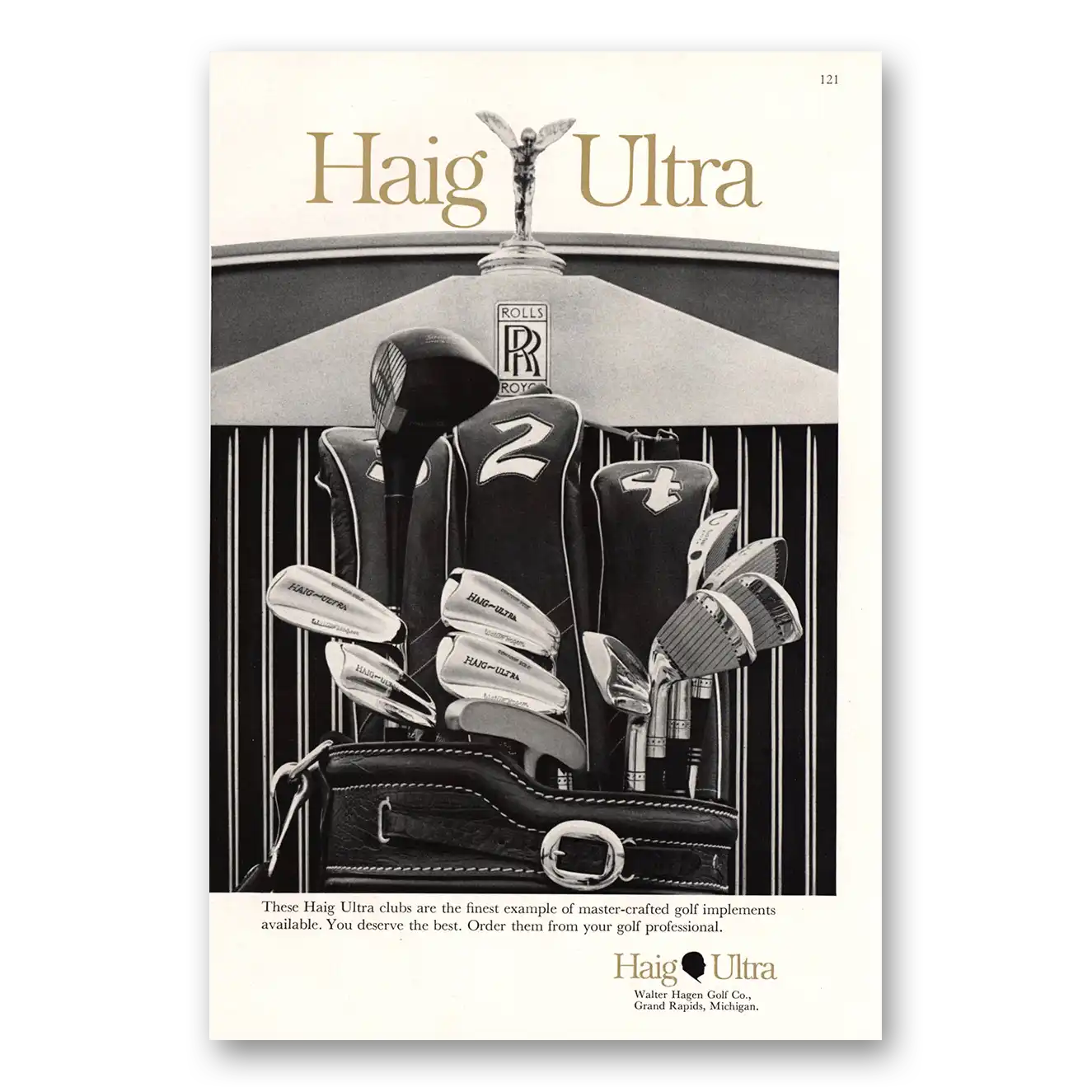 This is an original 1967 Haig Ultra Golf Clubs print ad published by Walter Hagen Golf.