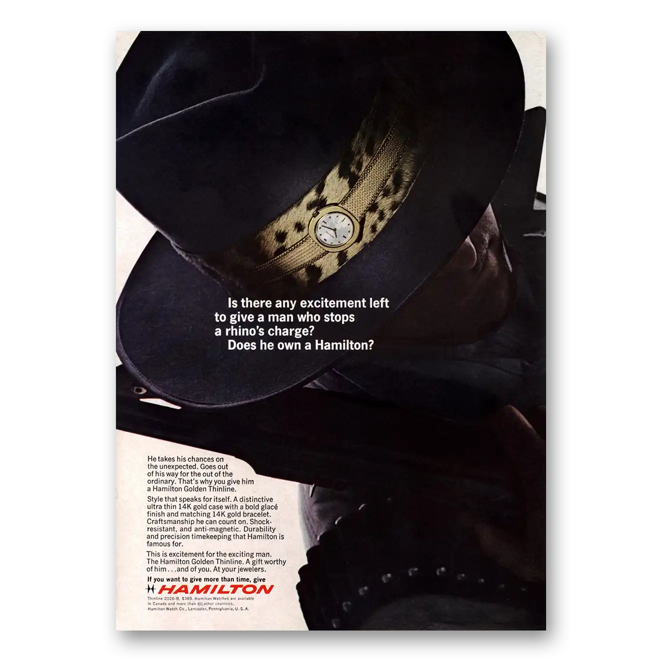 1967 Hamilton Watch Print Ad | Rhinos Charge