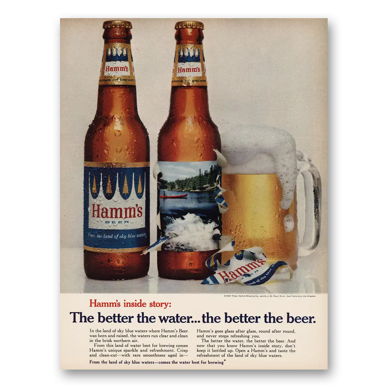 This is an original 1967 Hamms Beer print ad published by Hamm Brewing.
