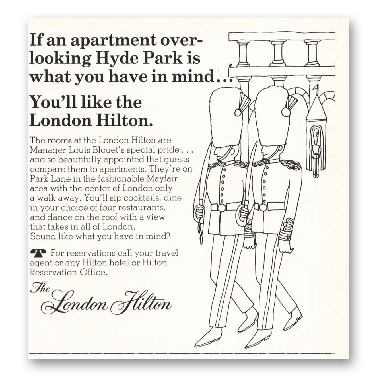1967 Hilton Hotels Print Ad | Apartment Overlooking Hyde Park
