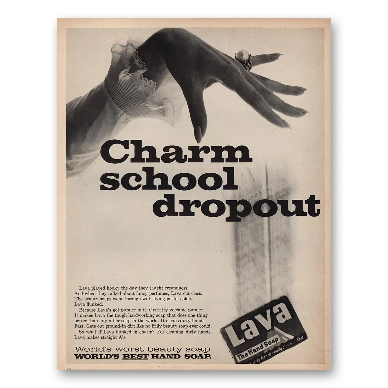 This is an original 1967 Lava Soap print ad published by Lava Soap.