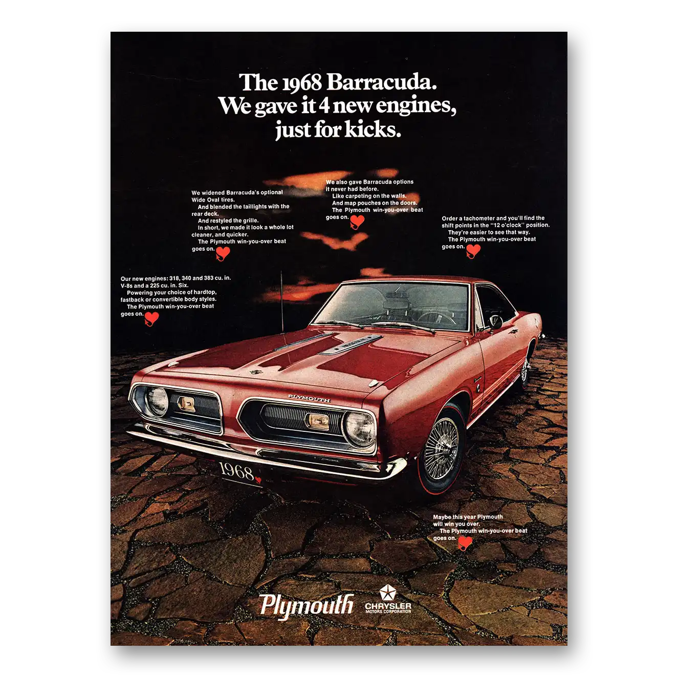 1967 Plymouth Barracuda Print Ad | 4 New Engines