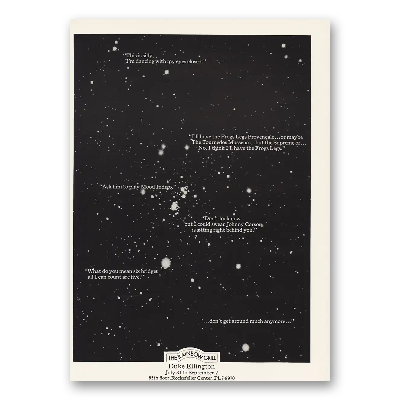 1967 Rainbow Grill Rockefeller Center Print Ad | Duke Ellington