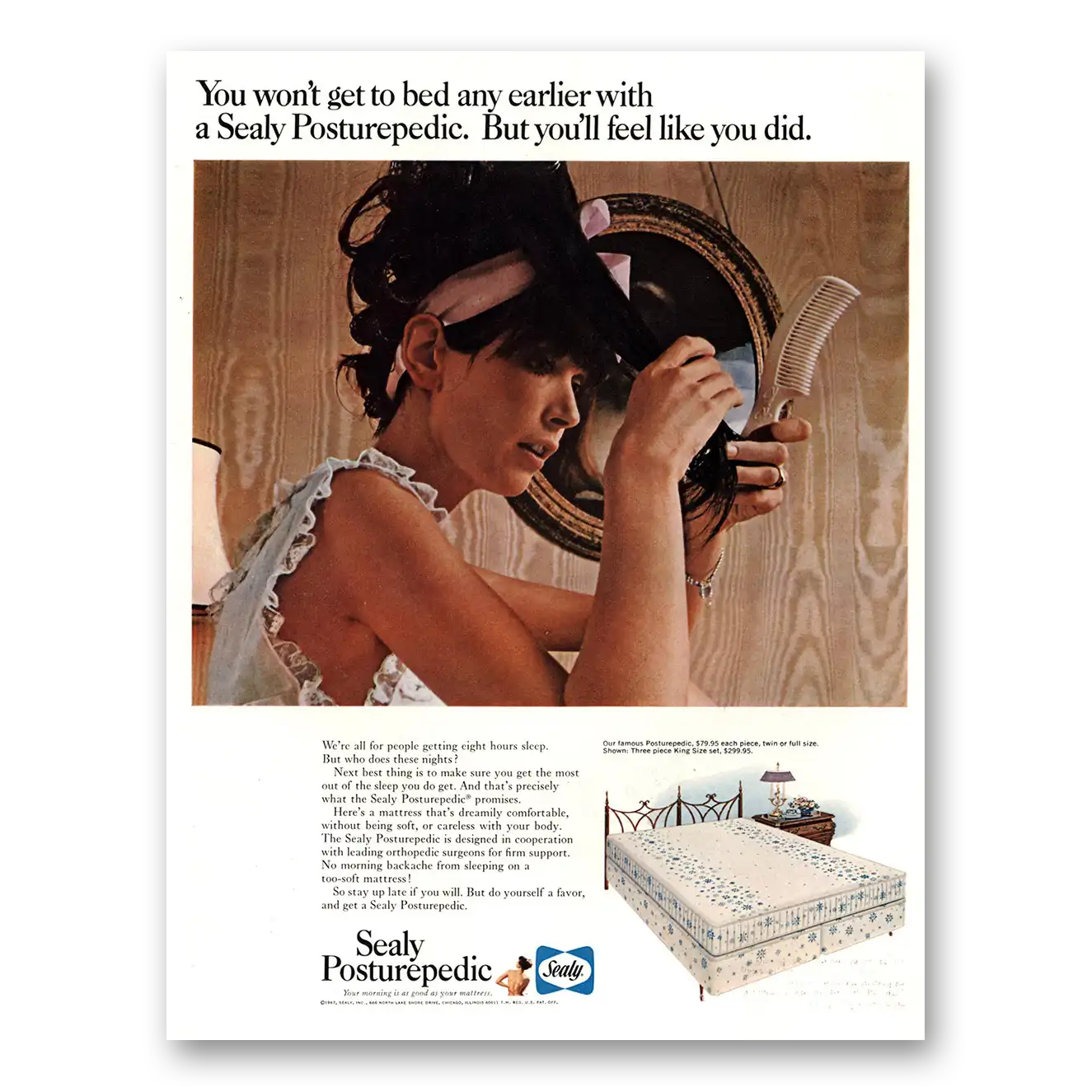 This is an original 1967 Sealy Posturepedic Mattress print ad published by Sealy Mattress.