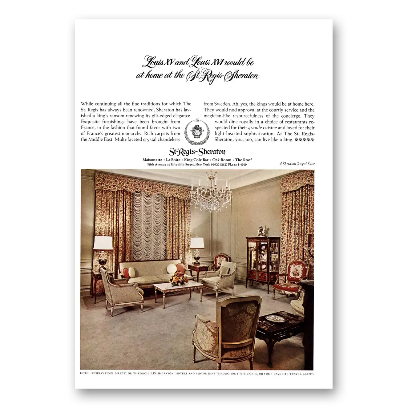 1967 St Regis Sheraton Hotel Print Ad | Louis Xv