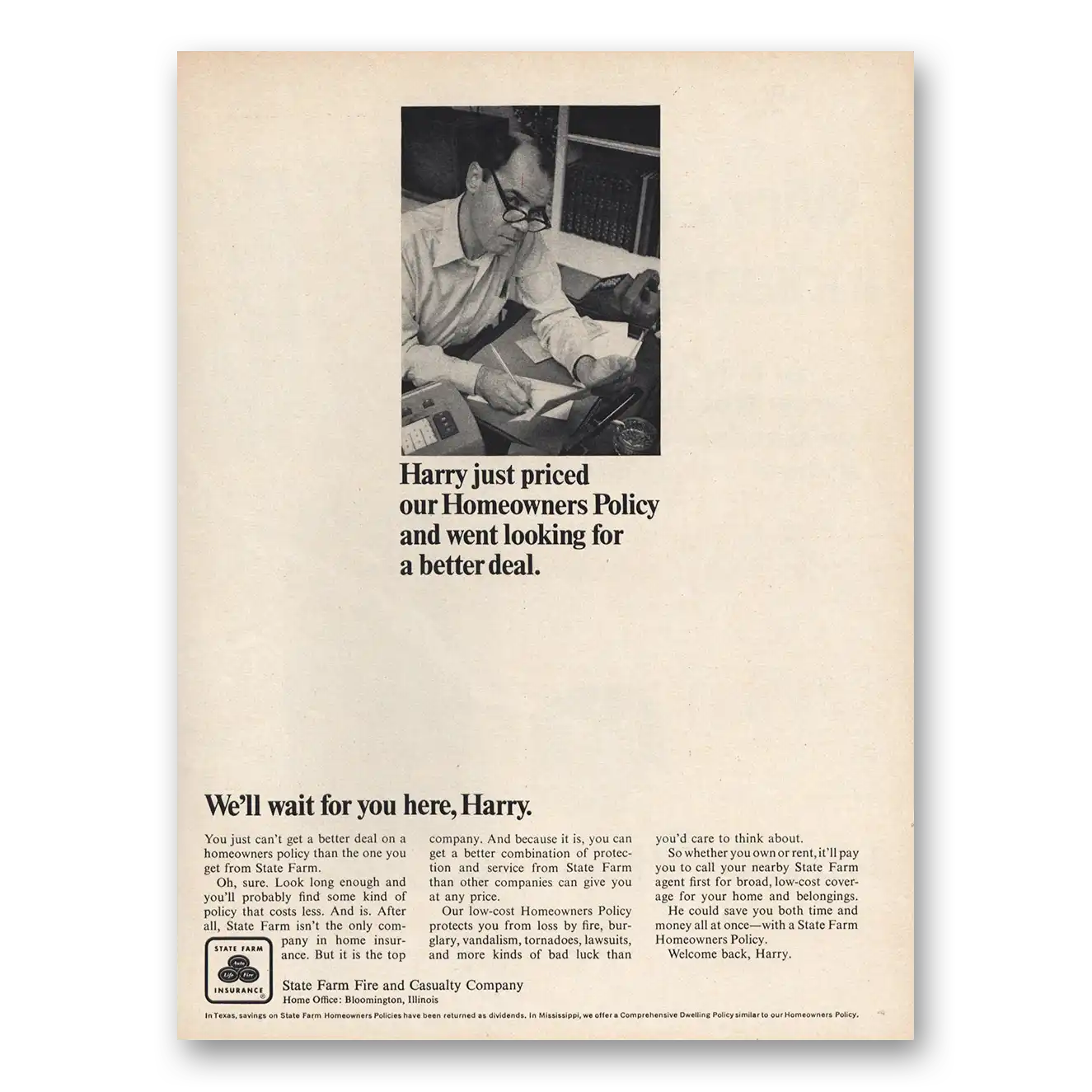 1967 State Farm Insurance Print Ad | Harry Homeowners