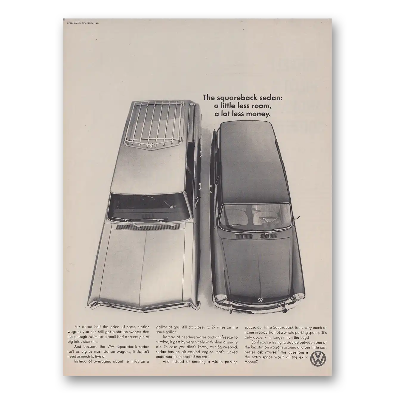 1967 Volkswagen Squareback Sedan Print Ad | Little Less Room