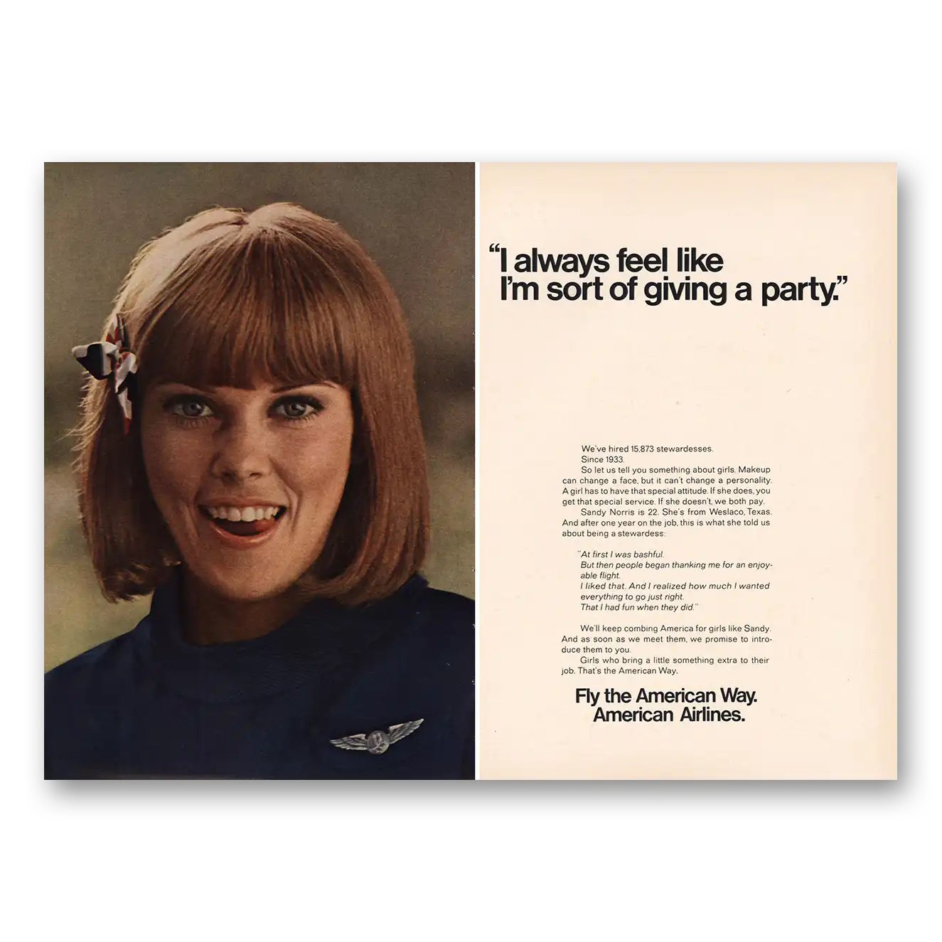 1968 American Airlines Print Ad | Feel Like Im Sort Of Giving Party
