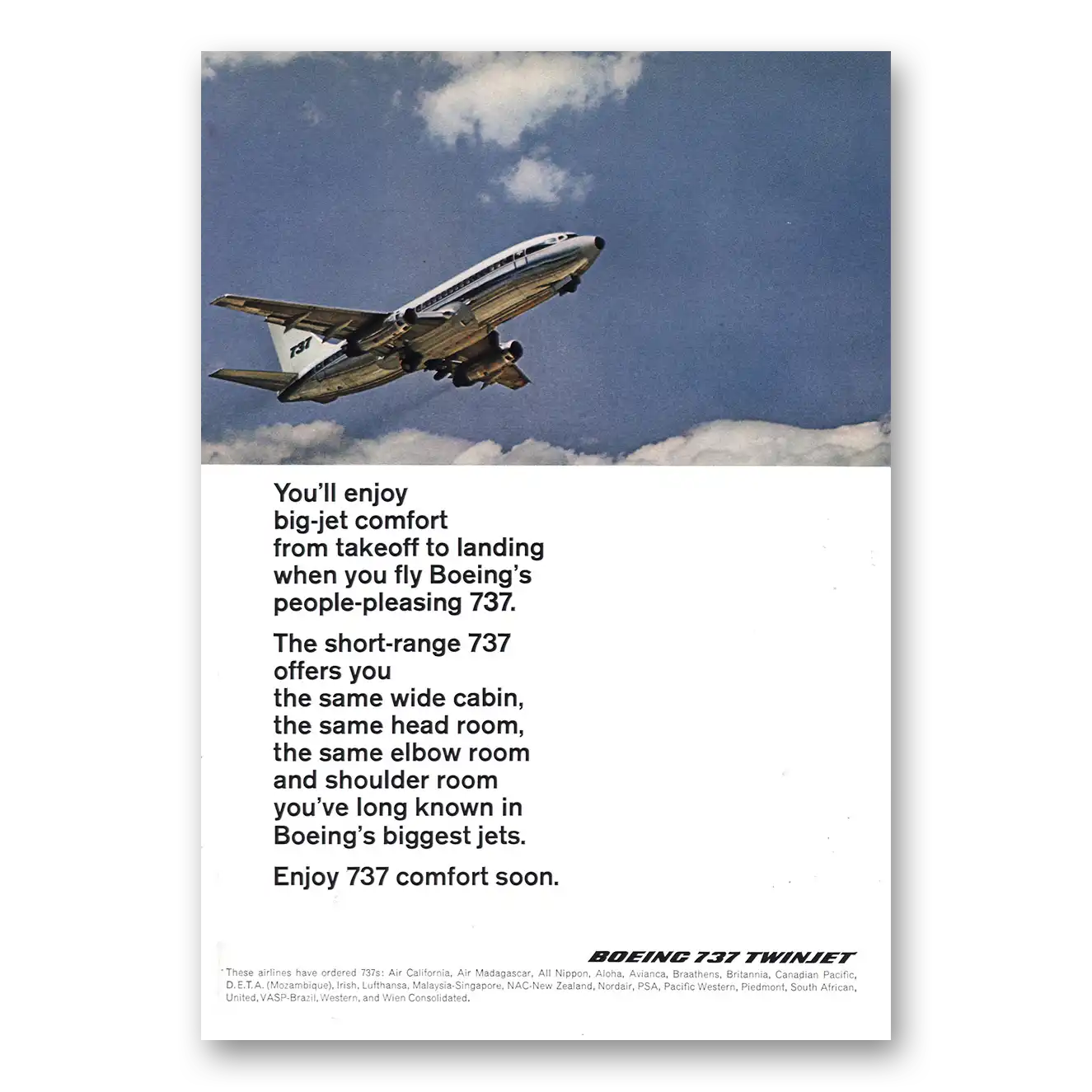This is an original 1968 Boeing 737 print ad published by Boeing.